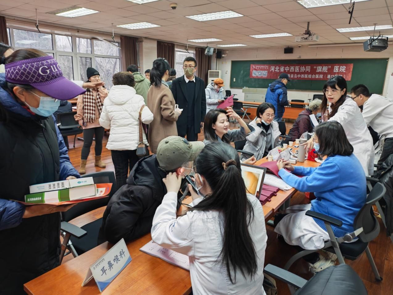 上午,燕山大学东校区第四教学楼内暖意融融,“AI赋能康养・智享银龄生活”主题义诊活动在此开展。在义诊专区,秦皇岛中西医结合医院(港口医院)集结了治未病科、疼痛科、关节外科、康复科等13个重点科室的专家团队,为老同志们提供一对一问诊、体格检查、病情分析、用药指导等服务,针对高血压、关节炎、失眠等老年常见问题开具个性化诊疗方案。